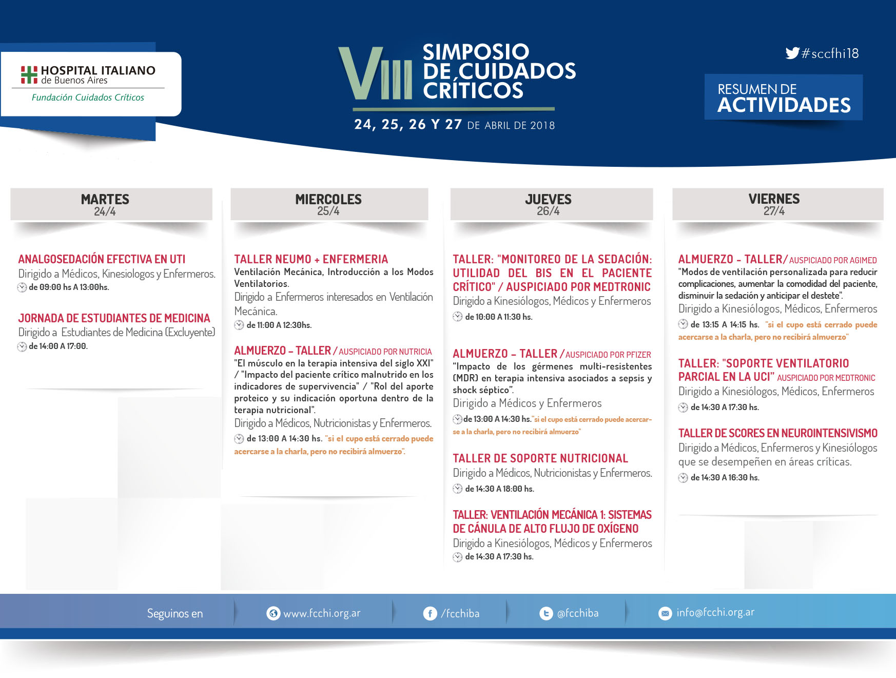 Se han AGOTADO los cupos para todos los talleres, excepto el específico para estudiantes de medicina. Gracias a todos por su interés en nuestra propuesta educativa.
